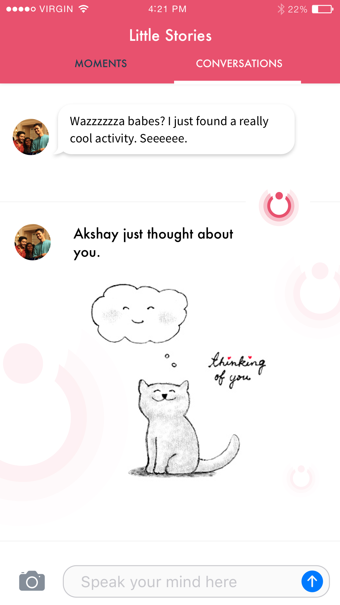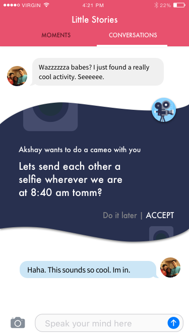 Little stories was aimed at aimed at fostering healthier long distance relationships through deeper personal informatics, fun & experimental engagement. I was responsible for researching on the core requirements and then giving them conceptual visual forms.