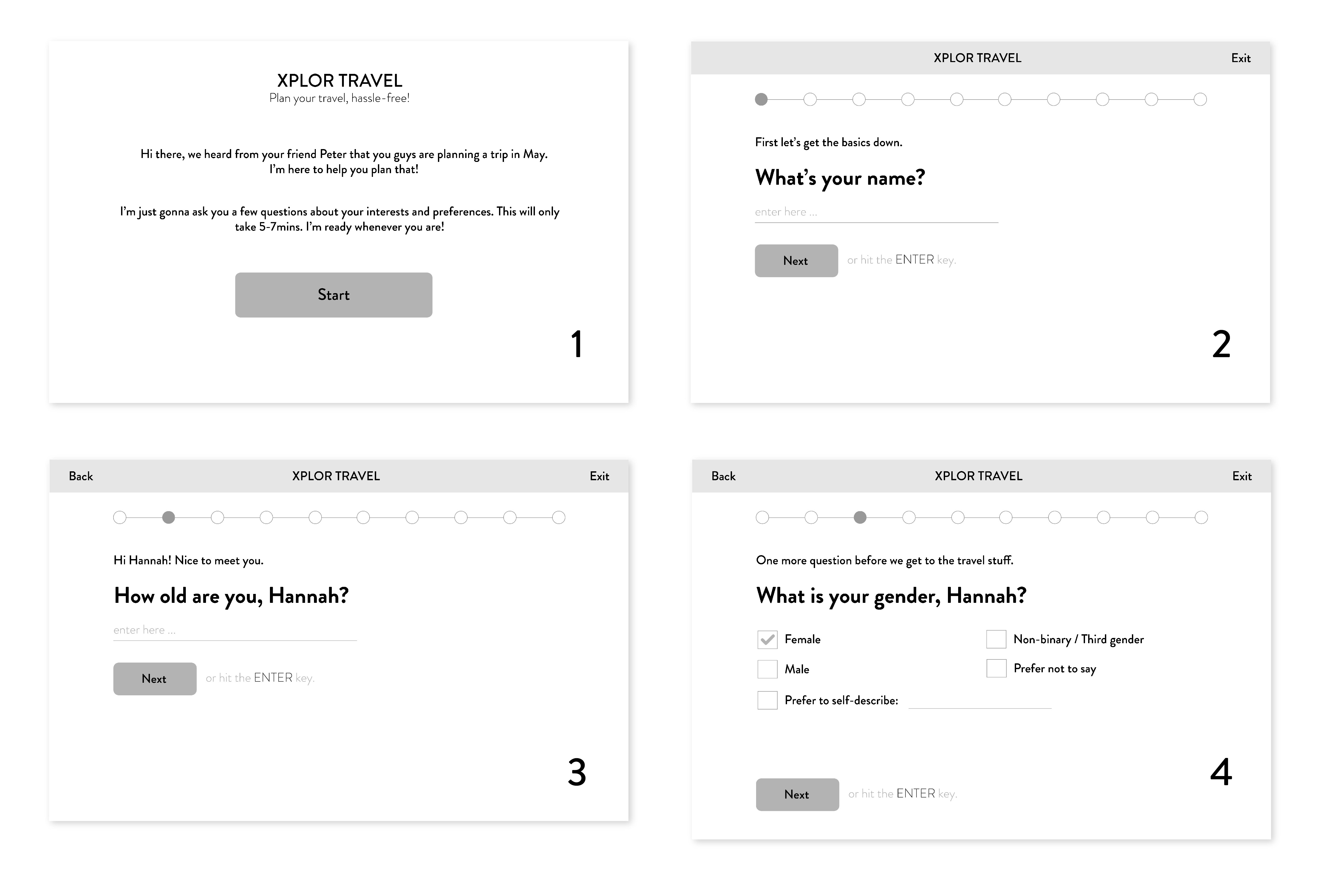 We designed the following user interest survey to capture details that the travel agent needs from each group member.